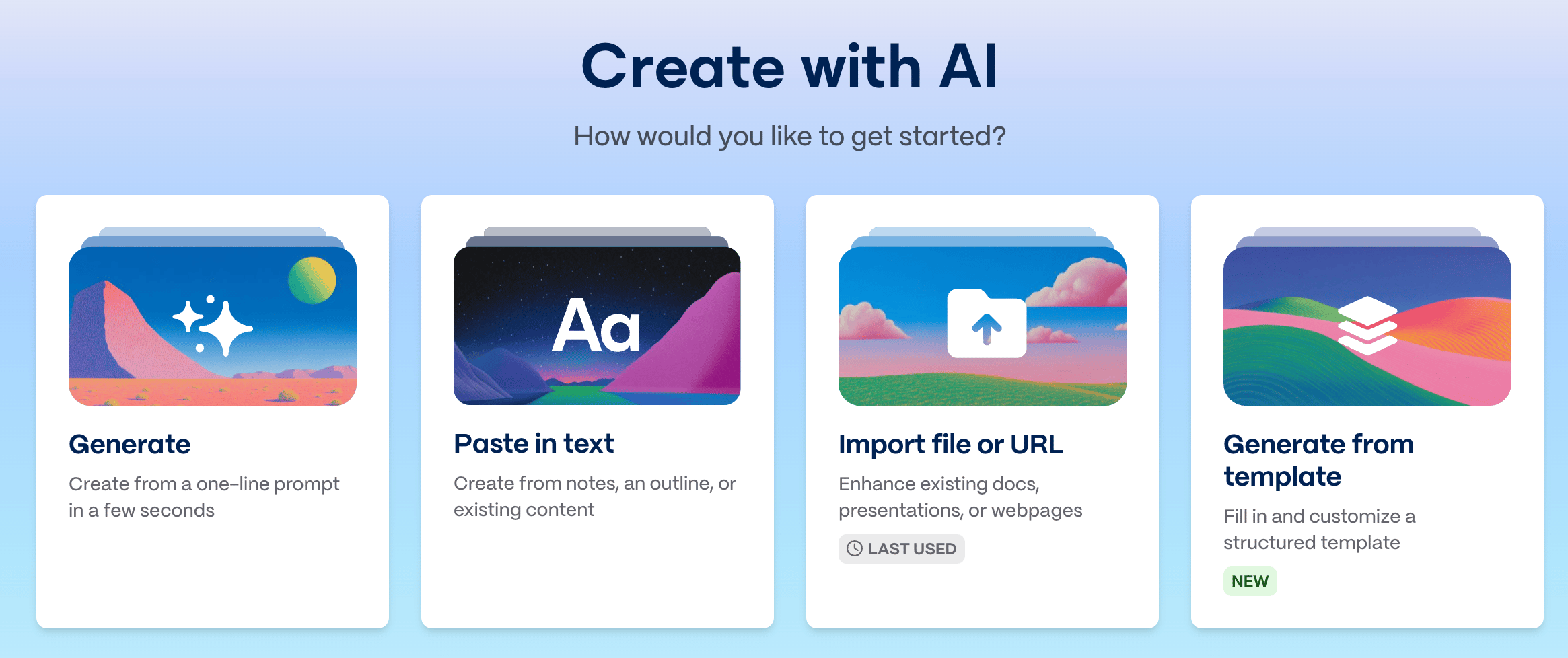 Okay so you can do pretty similar stuff in notebooklm, but I had a professor recently show me this one and thought it'd be interesting to share with you (lucky you!). Gamma.app is an AI presentation generator. It "rapidly creating professional presentations, documents, websites, and social media content from simple text prompts."